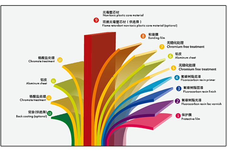 JX-8018 檸檬黃鋁塑板產(chǎn)品結(jié)構(gòu): √